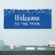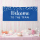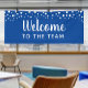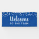Bienvenue dans la bannière de l'équipe avec du texte entièrement personnalisable. Confetti cercles et étoiles au sommet. Modifiez l'arrière - plan bleu en une autre couleur si vous le souhaitez. Bienvenue aux nouveaux membres ou employés avec une bannière amusante.