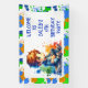 Bienvenue sur la bannière de notre fête d'anniversaire. Un mignon petit garçon jouant à des jeux vidéo. Arrière - plan de peinture bleu, vert et orange.