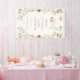 Accueillez vos invités avec charme grâce à cette bannière de bienvenue pour Baby Shower Fille Rose Livraison de Cigogne ! Avec un ours en peluche mignon dans un paquet rose porté par une cigogne aquarelle, ce design floral est encadré de fleurs de jardin pastel pour un toucher élégant et fantaisiste. Parfait pour une baby shower fille !
