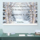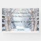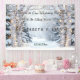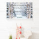 Beau mariage d'hiver "Bienvenue à notre réception de mariage" bannière avec pins, bouleaux blancs enveloppés de jolies lumières de Noël. neige et étoiles scintillantes. Personnalisez avec votre message et vos noms. Idéal pour les fêtes de Noël ou le Sweet sixteen Winter Wonderland.