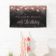 Cette bannière de fête d'anniversaire chic et moderne, élégante, noire et rose, brillante parties scintillant, est parfaite pour tous les âges avec élégante calligraphie, cool, noir métal noir sombre et rose strass parties scintillant en or noir à l'arrière. Personnalisez-le avec vos propres informations avec de belles polices monographiques.