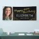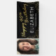 Bannière personnalisée de fête de quarantième anniversaire avec un arrière - plan noir élégant qui peut être changé à n'importe quelle couleur, une photo du garçon/fille anniversaire, parties scintillant brillante or, les mots "heureux 40ème anniversaire" dans un faux script de feuille d'or, leur nom, et la date.