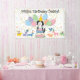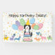 Faites de votre Goldendoodle un anniversaire spécial grâce à notre design adorable sur le thème du chien avec un casquette de fête et des ballons colorés. Personnalisez cette bannière de fête d'anniversaire amusante avec le nom de votre chien pour une fête de queue !