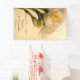 La jolie bannière blanche de mariage de printemps des jonquilles doubles aura l'air magnifique sur la voiture mariage des jeunes mariés ou comme signe d'accueil et d'orienter vos invités à votre cérémonie de mariage ou réception du printemps de mars, avril ou mai. Ce magnifique panneau de bannière mariage botanique personnalisé présente une photo florale numériquement peinte de fleurs de double jonquilles blanches fleurissent sur la tige avec un arrière - plan blanc off et les mots Happily Ever After.