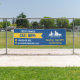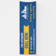 Bannière publicitaire horizontale en plein air pour votre petite entreprise en jaune et bleu avec votre logo, votre site Web d'affaires, votre numéro de téléphone, votre offre et votre spécialité en polices faciles à lire. Bannière publicitaire en extérieur bleu et jaune pour votre entreprise personnalisée avec logo contre un arrière - plan bleu et des détails jaunes attrayants. Bannière marketing en plein air avec votre logo avec APPEL MAINTENANT au-dessus de votre numéro de téléphone et de votre site Web.