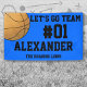 Bravo à votre équipe avec cette bannière de l'équipe de basket-ball noir bleu. Personnalisez avec le numéro et le nom de votre athlète et le nom de l'équipe. Vous pouvez même changer le message. Montrez votre esprit d'équipe cet été.