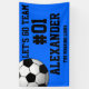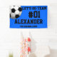 Bravo à votre équipe avec cette bannière de l'équipe de football noir bleu. Personnalisez avec le numéro et le nom de votre athlète et le nom de l'équipe. Vous pouvez même changer le message. Montrez votre esprit d'équipe cet été.