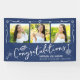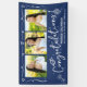 Announce to the world that your favorite grad has reached their milestone with this quirky, whimsical, simple, modern, personalized 3 photo banner. Fun, white handwritten script typography and hand drawn graduation icon sketch doodles, along with 3 photos of your choice, overlay a navy blue background. Personalize the custom text with your grad’s name, school and class year and your 3 photos. Choose from numerous sizes as well as indoor or outdoor options. Matching invites, thank you cards, address labels, hand signs, foam core welcome boards and other graduation goodies are also available in this trendy and whimsical collection. Guaranteed to preserve cherished memories of their special occasion!