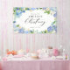 Welcome your guests with a soft, elegant touch. This customizable christening welcome banner features watercolor blue hydrangeas, ivory roses, and natural greenery in a timeless floral arrangement.
