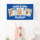 Cette bannière tendance bleue coutume senior portraits photo collage graduation fête comprend des lettres de varieté blanche pour la Classe de 2025 sous votre message de félicitations pour un diplôme d'études secondaires ou collégiales. Customisez avec vos 3 photos de graduation préférées pour un décor de grande fête.