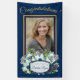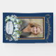 Votre photo et votre nom dans un Boho bleu et or design de fleurs graphiques contemporaines, plumes, et encadré dans l'or frappant et colorway bleu.