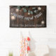 Bois rustique & String Lights New Years Eve Party Banner dispose de bois rustique brun foncé, eucalyptus, phares à cordes & nom de famille modèle.Un design parfait pour les nouvelles années eve party.Veuillez cliquer sur le bouton personnalisé pour le customiser avec votre propre nom de famille.