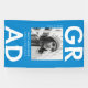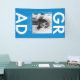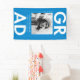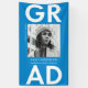 Custom graduation banner featuring "Grad" in bold white lettering with a blue background or color of your choice. Personalize the photo graduation banner by adding the graduate's name, school name, and graduation year. The trendy graduation banner is perfect to display at your graduate's high school or college graduation party!