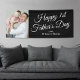 Banderole de première fête des pères simple avec un arrière - plan noir élégant, une photo de votre mari/partenaire et de votre enfant, le dicton "happy 1st fête des pères", plus le vôtre et le nom des enfants.