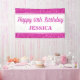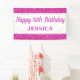 Cette joyeuse bannière d'anniversaire présente une parties scintillant faux rose. Personnalisez-le avec un nom.