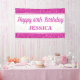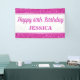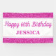 Cette bannière de 60e anniversaire joyeuse présente une parties scintillant faux rose. Personnalisez-le avec un nom.