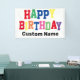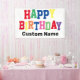 Joyeux Anniversaire Colorful Personnalisé Name Banner fait un décor génial pour tout âge. Le arrière - plan est blanc personnalisable. "Joyeux Anniversaire" est conçu dans des couleurs primaires de rouge, bleu, jaune, vert, violet et rose. Customisé avec le nom en noir.