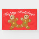 Deux bonshommes en pain d'épice vous souhaitent de Joyeuses Fêtes. La couleur du texte et du fond est personnalisable.