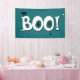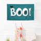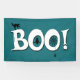 Boo! design de texte pour Halloween avec chat, araignée, hibou et araignée décoration sur arrière - plan bleu grunge.