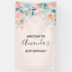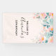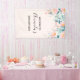 Bannière de baby shower avec une élégante bordure fleurie. Fleurs et feuilles en rose et vert.