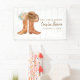 Célébrez l'amour avec un charme rustique en utilisant notre bannière de fête pour la douche de mariage du couple Country Boots ! Avec un thème western classique comprenant des bottes de cowboy, des textures de bois et des accents floraux, cette bannière est parfaite pour honorer le couple qui va bientôt se marier. Entièrement personnalisable avec les détails de votre événement, elle fait une déclaration audacieuse qu'elle soit accrochée à l'intérieur ou à l'extérieur. Idéale pour les douches de mariage mixtes, les fêtes de fiançailles ou toute célébration sur le thème western.