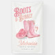 Célébrez avec style grâce à ce charmant design d'enterrement de vie de jeune fille avec des bottes et du champagne, mettant en vedette un thème chic country-western avec une touche féminine. Le design présente de élégantes bottes de cowboy à l'aquarelle rose, un chapeau de cowgirl rose coordonné avec des diamants scintillants et un verre de champagne pétillant, le tout sur un fond propre et sophistiqué. La typographie d'inspiration rétro dans des tons rose pâle et pêche ajoute une touche ludique et raffinée, complétant parfaitement l'ambiance festive et célébratoire de l'événement. Idéal pour les enterrements de vie de jeune fille avec un thème rustique glamour ou country chic, ce design personnalisable combine parfaitement le charme sudiste avec un esprit de fête.