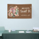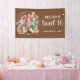 Bannière personnalisée Sweet 16 anniversaire conçue sur un arrière - plan marron rustique avec bottes de cowgirl et roses roses roses. Personnalisée avec le nom de l'invitée d'honneur et sa date de fête.