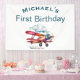 Le design se compose d'une bannière simple et minimaliste avec nom et âge personnalisable avec l'image d'un avion biplane rouge aquarelle entouré de nuages. Customisez-le avec votre petit nom d'aviateur.Parfait décor personnalisé de bannière de fête d'anniversaire! Contactez-nous avant de passer une commande pour d'autres personnalisations. Merci de visiter notre magasin. Les droits d'auteur explosent dans les modèles de style. Tous droits réservés.