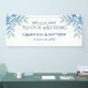 Ajoutez cette bannière de réception Branches de saule bleu à vos accessoires de mariage. Créée dans des nuances douces de bleu aquarelle, avec des touches de vert pâle, cette bannière est facile à personnaliser avec les prénoms des mariés et la date du mariage, en utilisant notre modèle facile. N'oubliez pas de consulter l'ensemble de la collection d'accessoires de réception de mariage et de papeterie Branches de saule bleu. Profitez !