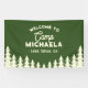 Banderole de bienvenue en vert pour un week-end de filles destination glamping de camp met une ambiance instantanée "Camping Bride" et aide les invités à trouver le camp de base dès leur arrivée. Conçu pour les cabines, les maisons de lac, les gîtes de montagne, les campings et les locations de parcs nationaux, cette bannière personnalisée présente le nom et l'emplacement du camp de la future mariée afin que vous puissiez marquer l'escapade pour votre fête de bachelorette de destination. Utilisez-le à l'entrée du lodge, à la porte du bunkhouse, au pavillon du camping, à la balustrade du porche ou à la table d'enregistrement pour accueillir l'équipage, marquer les points de rencontre et ancrer votre thème d'aventure rustique pour les randonnées, les journées en bateau, les arrêts vinicoles et les nuits douillettes de feu de camp. Les oeuvres d'art de plein air et la typographie classique du camp se sentent comme à la maison avec les vibes lac, rivière, tente, montagnes et feu de camp, et il coordonne sans effort avec les invitations assorties, les faveurs et le décor pour une suite cohésive. Parfait pour une fête de bachelorette ou un week-end de filles détendues au bord du lac, cette bannière d'accueil durable sert de toile de fond de photo amusante et de garde de la mariée après la fête. Si vous planifiez un week-end de destination en plein air avec un confort glamour et des plans d'aventure, cette bannière d'accueil de bachelorette du camp est le signe polyvalent sur le thème qui l'assemble.
