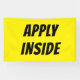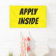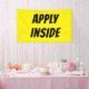 Guidez les chercheurs d'emploi directement à votre porte avec cette bannière APPLY INSIDE en gras jaune et noir. Conçu pour une visibilité maximale, il s'associe parfaitement avec les bannières "Now Hiring" ou "Help Recherché", ce qui indique clairement où les candidats doivent aller. Couleurs haute visibilité : arrière - plan jaune avec texte noir en gras pour la clarté au bord de la route et au bord de la vitrine. Appel à l'action clair : Oriente les demandeurs exactement où présenter leur demande. Construction durable : vinyle résistant aux intempéries avec des grommets renforcés pour une pendaison facile à l'intérieur ou à l'extérieur. Tailles multiples : Disponible dans de petites tailles adaptées aux fenêtres et dans des formats extérieurs plus grands. Que vous soyez un restaurant, un magasin de détail ou une entreprise de services, cette bannière vous assure que votre message d’embauche n’attire pas seulement l’attention — elle guide également les candidats à passer à l’étape suivante.