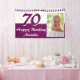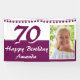 Bannière d'anniversaire 70 ans avec étoiles de guirlande scintillantes violettes. Modifiez le nom et la photo sur la bannière.