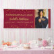 Une bannière festive de fête de fin d'études avec confettis dorés sur fond burgundy. Personnalisez avec le nom du jeune diplômé, photo, nom de l'école / collège et année.