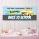 Bienvenue à vos élèves à l'école avec cette bannière amusante avec un drapeau de bienvenue attaché à un autobus scolaire. Personnalisez avec le nom de l'école.