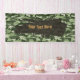 Un camouflage vert audacieux fait une déclaration forte lors des matchs sportifs, des rassemblements de supporters ou des événements d'esprit scolaire. Personnalisez avec un nom d'équipe, un message étudiant ou un message de famille pour les anniversaires, les réunions ou les remises de diplômes. Une bannière polyvalente qui convient à la fois aux utilisations ludiques et professionnelles.