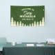 Bannière de bienvenue pour enterrement de vie de jeune fille en camping en vert pour un week-end de voyage entre filles dans une destination de glamping, elle donne instantanément une ambiance "Camp Bride" et aide les invités à trouver le camp de base dès leur arrivée. Conçue pour les cabines, les maisons de lac, les lodges de montagne, les terrains de camping et les locations de parcs nationaux, cette bannière personnalisée présente le nom de camp et le lieu de la future mariée afin que vous puissiez personnaliser la escapade pour votre enterrement de vie de jeune fille de destination. Utilisez-la à l'entrée du lodge, à la porte de la maison de dortoir, au pavillon du camping, à la rambarde du porche ou à la table d'enregistrement pour accueillir l'équipe, marquer les points de rendez-vous et ancrer votre thème d'aventure rustique pour la randonnée, les journées en bateau, les arrêts à la winery et les soirées au coin du feu. L'illustration de plein air et la typographie de camping classique se sentent chez elles avec les ambiances de lac, de rivière, de tente, de montagnes et de feu de camp, et elles se coordonnent sans effort avec les invitations, les faveurs et la décoration assorties pour une suite cohérente. Parfait pour un enterrement de vie de jeune fille en camping