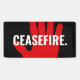Cessez-le feu rouge blanc noir main en gras texte personnalisé anti-guerre bannière. Texte blanc, main rouge, arrière - plan noir. Texte entièrement personnalisable. Conflit Moyen-Orient / Gaza.