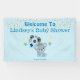 Un mignon ours gris avec des ballons qui disent, c'est un garçon. L'arrière - plan est des points bleus et blancs avec un brin de confettis et d'étoiles. Personnalisez avec le nom de maman à être, et la date.