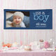 Couleurs fraîches et modernes avec bleu et blanc — Annoncez votre nouveau bébé avec une bannière personnalisée! Un design minimaliste avec du blues et du blanc en fait un design tendance pour parler à tout le monde de votre bébé.