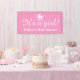 C'est un nom personnalisé fille signe bannière baby shower rose. Ajoutez votre nom et votre texte personnalisés. Joli modèle design avec silhouette de pieds bébé. Des panneaux extérieurs et intérieurs pour les fêtes des nouveau-nés. Convient pour garçon ou fille. Changez de couleur. Disponible en différentes tailles de petite à grande. Accrochez-vous à l'intérieur ou à l'extérieur.