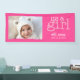 Couleurs fraîches et modernes avec rose et blanc — Annoncez votre nouvelle petite fille avec une bannière personnalisée! Un design minimaliste avec rose et blanc rend le design tendance pour parler à tout le monde de votre petite fille.