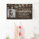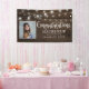 Rustic String Lights Wood Graduation Banner pour annoncer votre diplômé en style! Des panneaux de bois rustique et des lampes à cordes laissent de l'espace pour votre texte personnalisé et une photo de votre grad. Idéal pour les réceptions et fêtes de remise de diplômes ! Facile à customiser avec du texte, des polices et des couleurs. Créé par le designer pro de Zazzle BK Thompson © exclusivement pour Kate's Creations ; veuillez nous contacter si vous avez besoin d'aide, avez des questions, ou souhaitez vous renseigner sur le travail sur mesure.