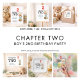 Chapter Two Teddy Bear Books Boy 2nd Birthday Welcome. Easily personalise the words as required. With a cute teddy bear holding a balloon and standing on a stack of books illustration.