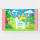 Scène adorable avec une licorne d'anniversaire spécial avec un château princesse dans l'arrière - plan! Personnalisé avec nom et âge.
