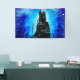 Le château impressionnant pendant la nuit avec la lune et les étoiles se retranchent, imaginaire, fée, "conte de fées", lune, nuit, étoiles, nébuleuse, oiseaux, mouche, vol, bleu