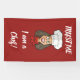 Chef avec casquette, collier rouge et texte personnalisé.