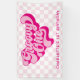 Créez votre propre bannière de typographie rose et rose "Super One" pour la fête d'anniversaire de votre petite fille. Vous pouvez modifier les deux nuances de rose dans le graphique vectoriel de texte. Ajoutez du texte du système pour créer votre propre design personnalisé. Customisez les couleurs pastel rose et blanc dans l'art vectoriel motif en damier.