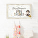 Celebrate your little wizard on the way with this enchanting Harry Potter baby shower banner featuring Harry himself. This charming design includes an adorable illustration of Harry Potter in his Hogwarts robes, riding his broom and ready for magical adventures. The background is sprinkled with colorful stars for a touch of whimsy. Elegant and playful fonts beautifully display your custom details, including the honoree’s name and event date. The unique paper texture of the banner creates a storybook feel. Perfect for any Harry Potter fan, this banner brings a spellbinding touch to your baby shower.