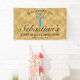 Bienvenue à vos invités, amis et famille avec cette Elégante Croix Bleue Or & Dove First Holy Communion Welcome Banner. Cette conception comporte une croix bleue avec une colombe volante contre un simple arrière - plan d'or avec du texte noir facile à lire. Personnalisez avec le nom de votre choix, ainsi que la date de votre première réception de la sainte Communion.