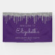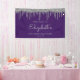 Bienvenue aux invités avec cette bannière de fête chic et glamour de 40e anniversaire, avec une bordure brillante en faux argent parties scintillant drip et arrière - plan violet. Personnalisez-le avec son nom en écriture manuscrite gris argent, avec l'anniversaire et la date ci-dessous en police sans serif.